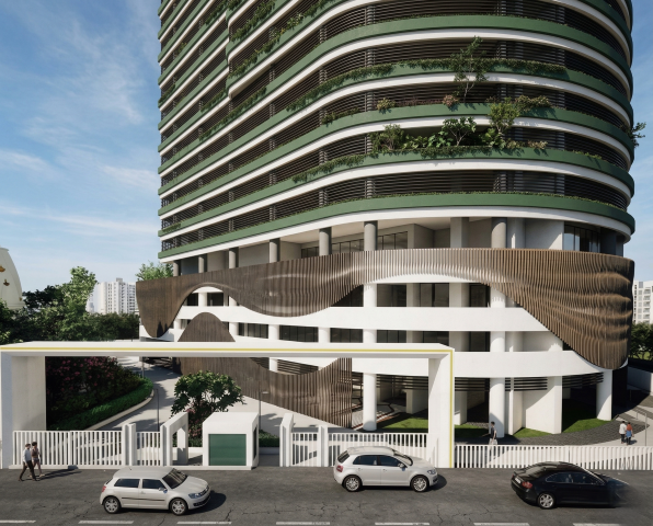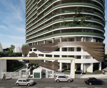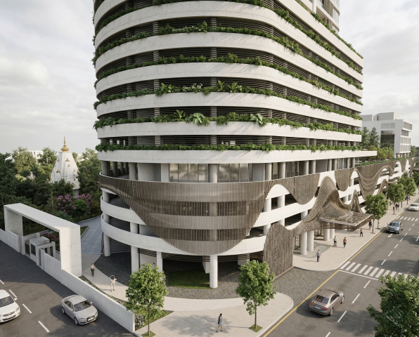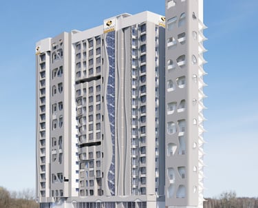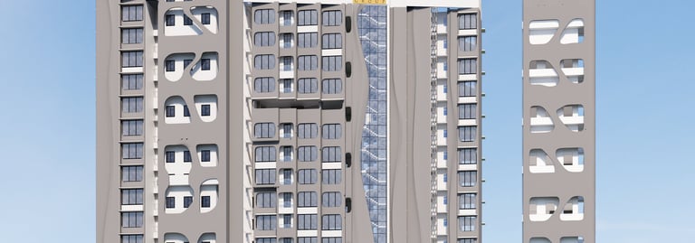 The façade developed for Fazlani Realty focuses on balancing aesthetics with performance. Carefully designed façade modules create depth, shadow, and visual articulation across the elevation while contributing to solar shading and environmental comfort. The result is a façade that reinforces the premium identity of the development.