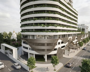 The façade system developed for the Bhoomi project focuses on creating a grounded and context-responsive architectural envelope suited for a contemporary development. Modular façade elements introduce controlled light, ventilation, and visual depth while maintaining a refined and cohesive identity. The system integrates functional shading with a balanced architectural language that complements the scale and character of the built environment.