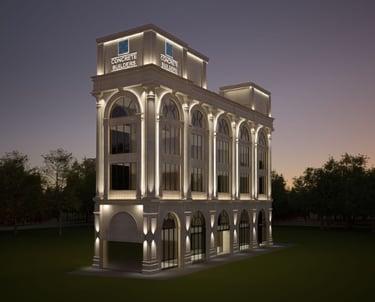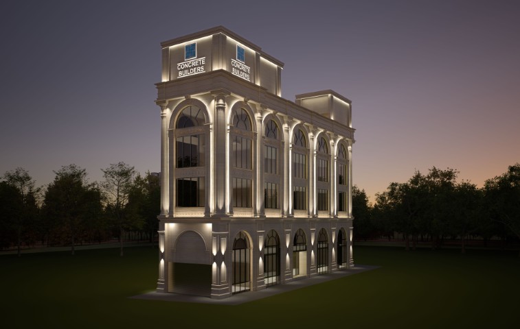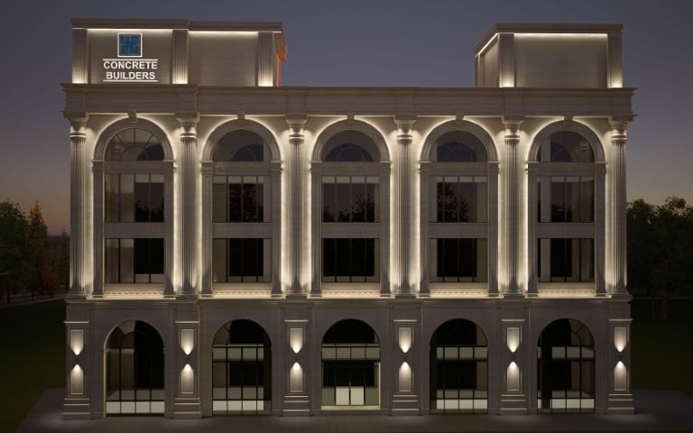 For Concrete Builders, the façade approach emphasizes contemporary expression and structural clarity. The design integrates modular façade components that provide solar control and visual texture to the building elevation. The system demonstrates how engineered façade modules can transform a conventional commercial structure into a more distinctive architectural presence.